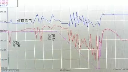 該機組負荷為550MW、處于順序閥方式下運行,#2高壓調(diào)節(jié)閥(GV2)突然發(fā)生較大幅度擺動(31%到70%),汽輪機#2軸振動增加,2Y向振動最高到149um,運行人員隨即將汽輪機切到單閥方式運行,并減負荷到450MW左右,在單閥方式下,GV2不再晃動,機組運行正常。此過程發(fā)生時,負荷變化情況如圖1所示。在此后的幾天內(nèi),當負荷在540MW附近時,順序閥方式下,GV2均會發(fā)生較大幅度晃動。