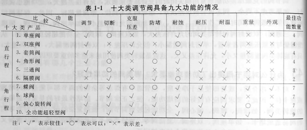 48、十大類調(diào)節(jié)閥中每一種閥具備九大功能的情況如何?